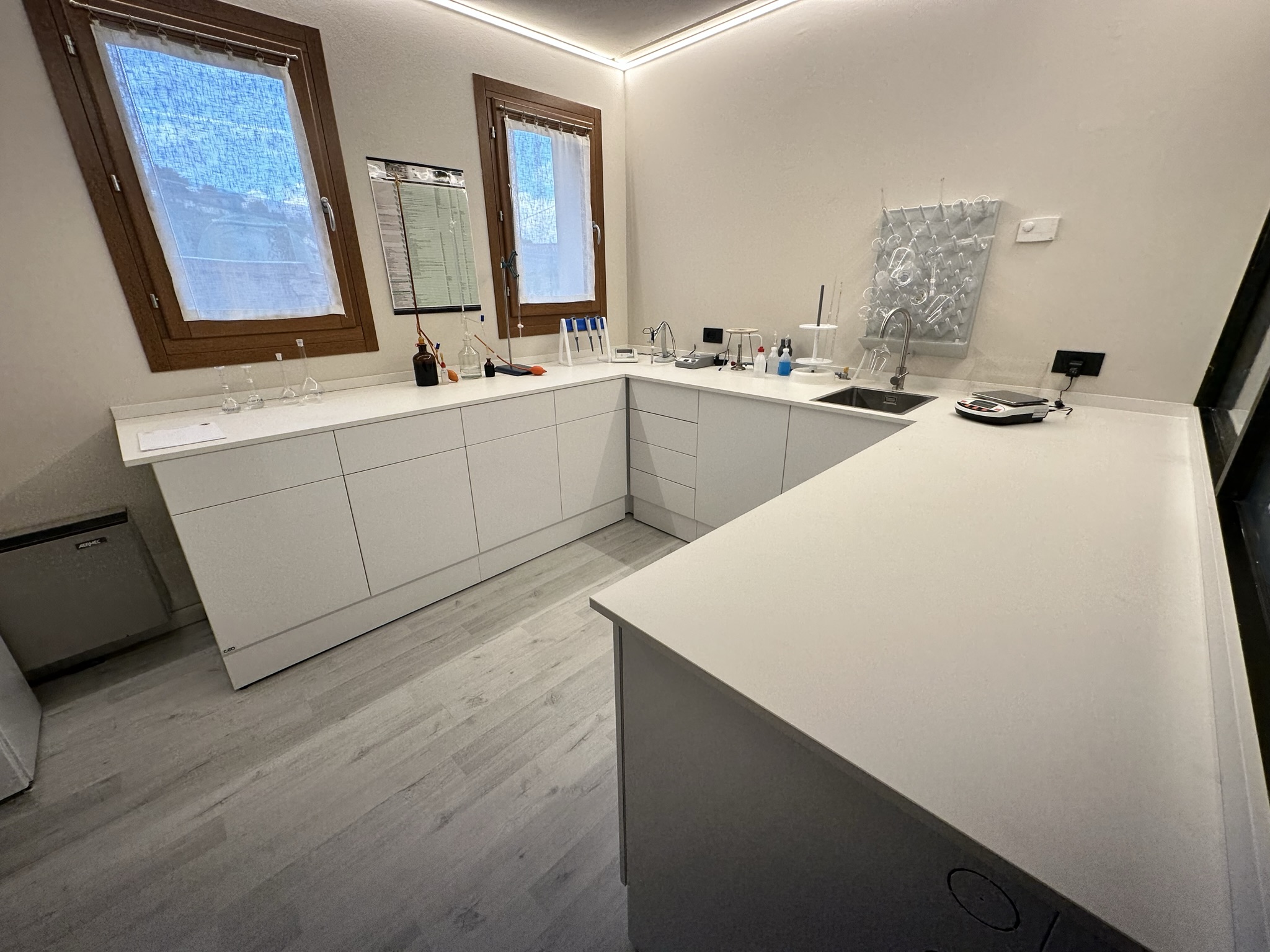 Postazioni progettate per garantire ordine, sicurezza e precisione durante le analisi chimiche e fisiche del vino. Superfici resistenti, moduli dedicati alla strumentazione e integrazione dei servizi permettono di lavorare in modo efficiente, riducendo errori e tempi operativi.